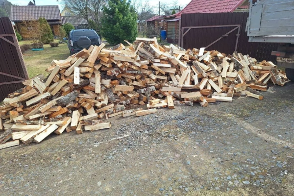 Аккуратно разгружаем в указанное место на вашем участке: возле дома, в дровянике, под навесом. При необходимости проносим дрова через узкие проходы вручную.